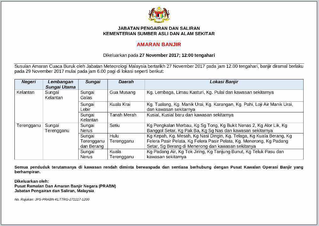 Amaran Banjir Dari Kementerian Sumber Asli dan Alam Sekitar