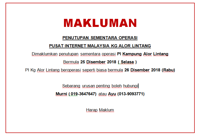 NOTIS PENUTUPAN PI KG ALOR LINTANG